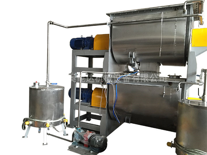 6、加液霧化裝置:可對不同粘稠度的液體物料進行霧化,使加入液體物料混合均勻(噴灑狀)。